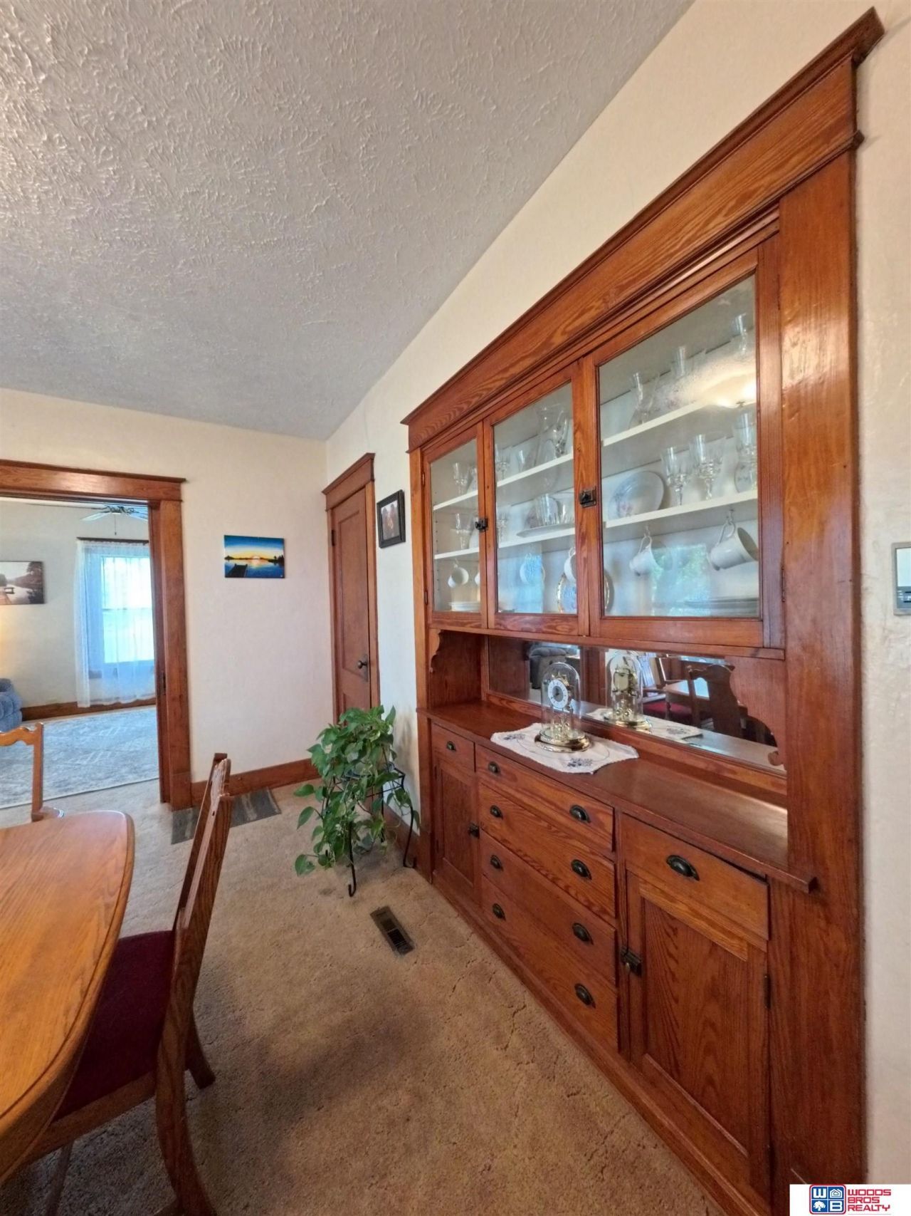 Nestled on the edge of Stromsburg, this charming acreage offers the perfect blend of peaceful country living and small town convenience. The quint home welcomes you with a cozy front porch and an enclosed porch - ideal spots to relax and take in the surrounding views. Inside you will find 4 bedrooms, including one on the main floor, along with convenient main floor laundry. The dining room showcases a beautiful built-in that adds character and charm, while the basement provides additional living space with a comfortable family room. Outside, the property truly shines with its classic outbuildings, including a barn, detached garages, and a charming she shed, perfect for hobbies, storage, or a private retreat. Surrounded by mature trees, this acreage offers privacy, space, and endless potential to make it your own.